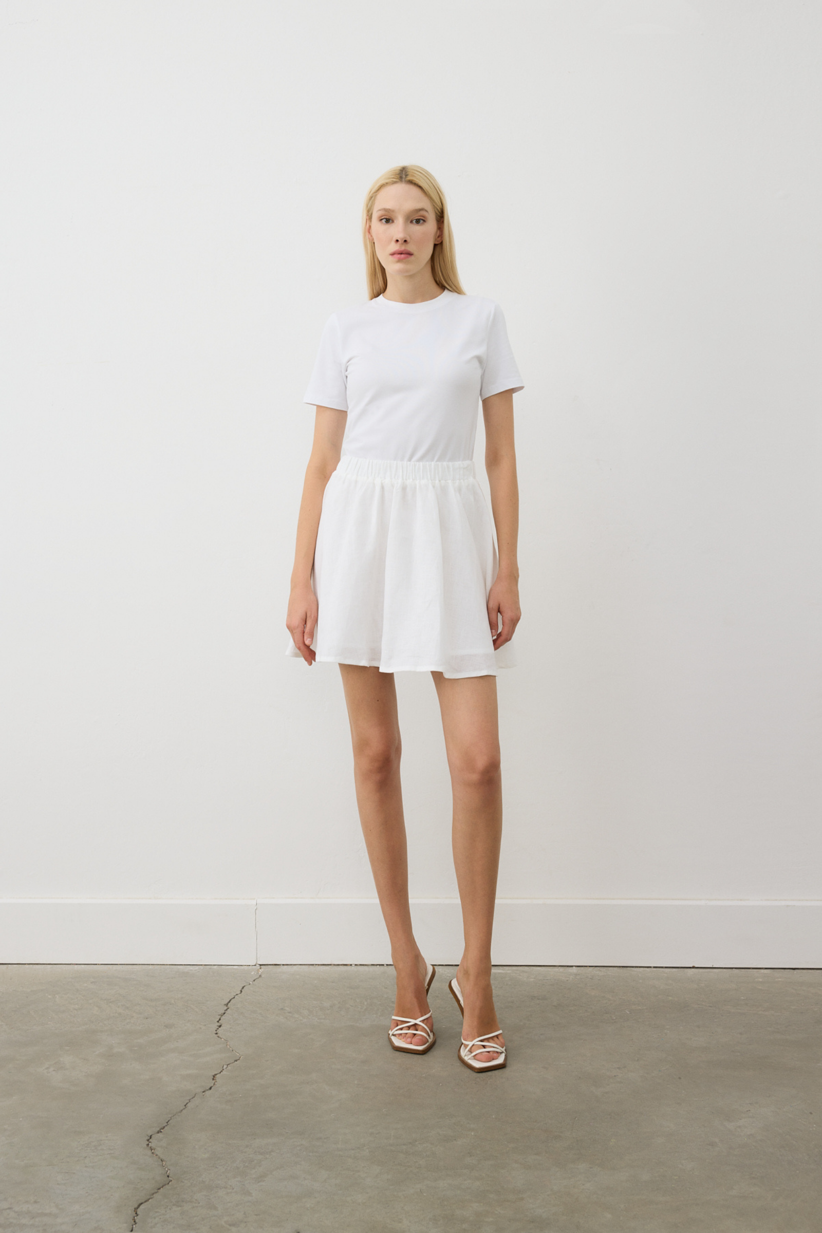 Mini kloş etek astarlıdır. Etek belinde lastik mevcuttur.
