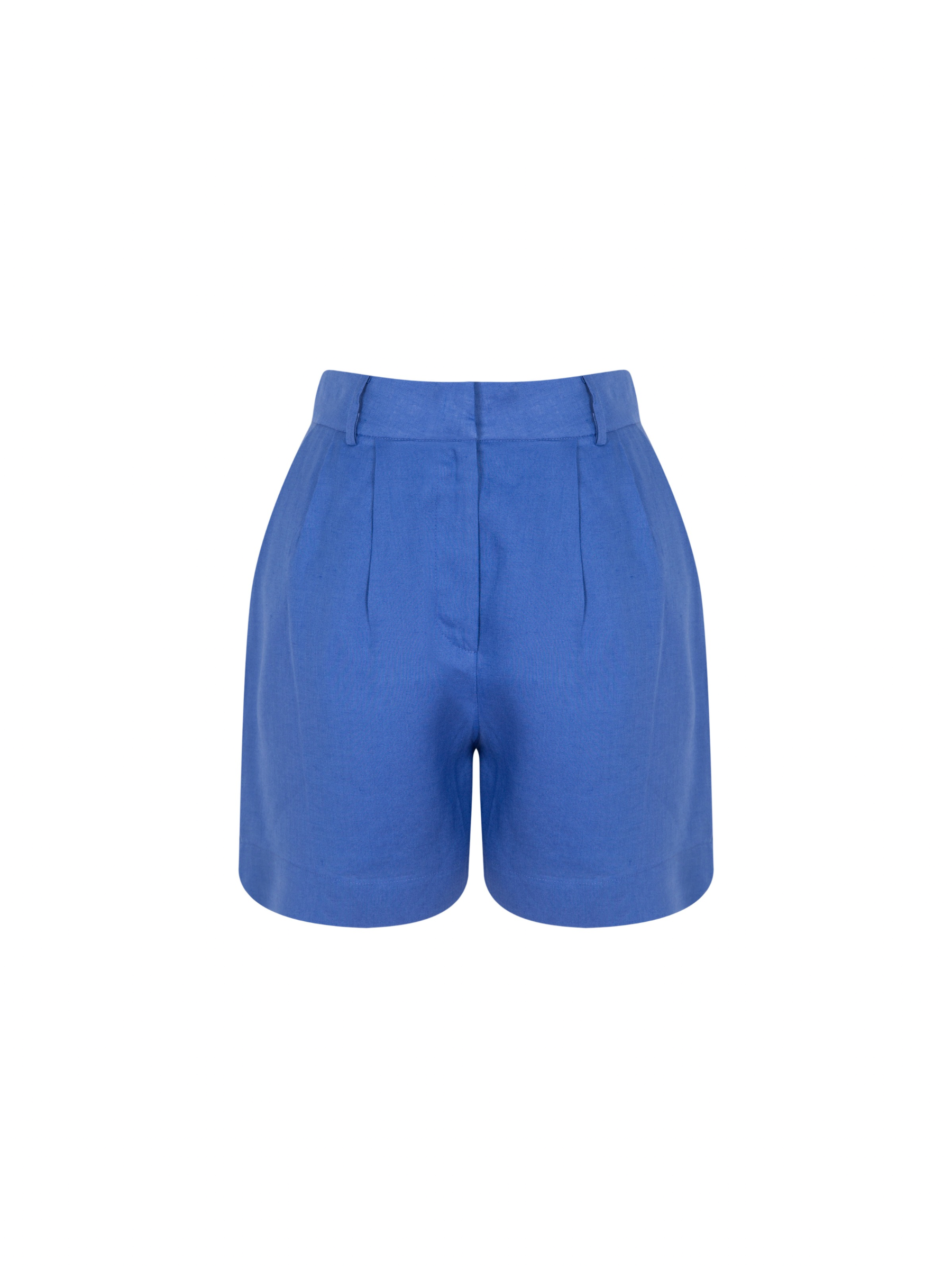 Ön Pile Detaylı, Yan Cepli, Mavi, Mini Şort.