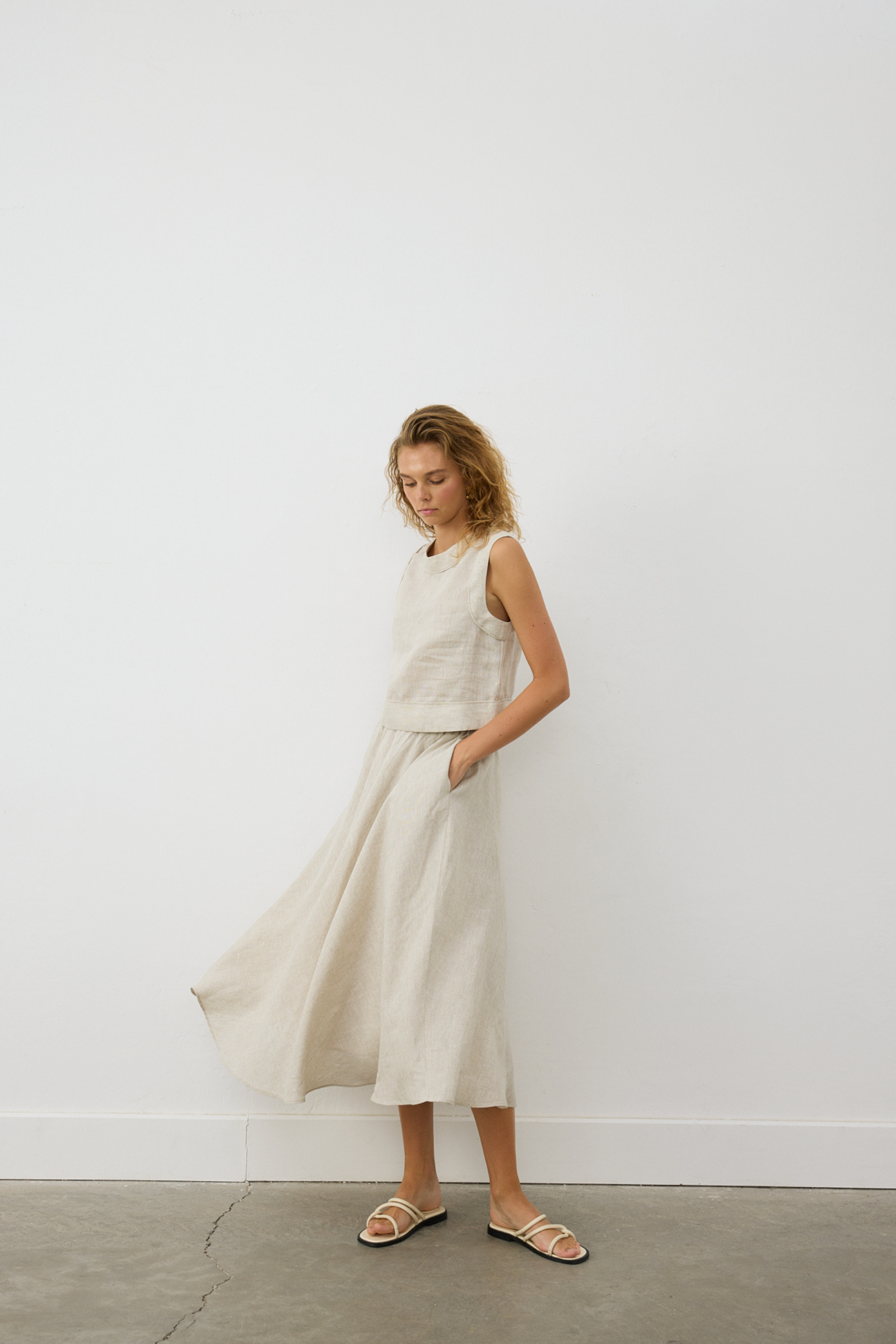 Uzun kloş etek ,etek belinde lastik mevcuttur.