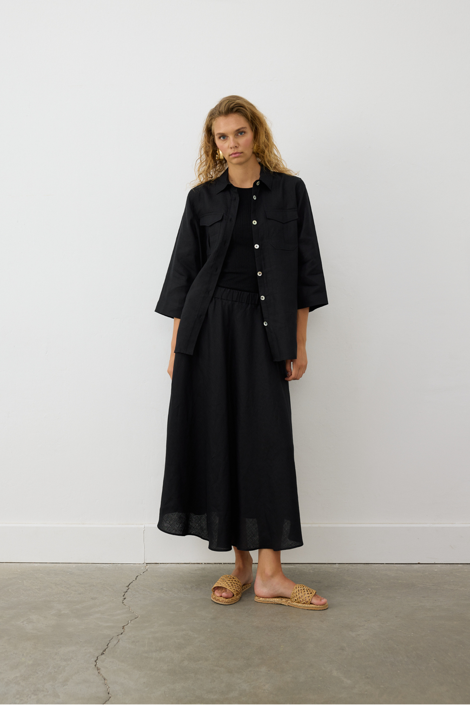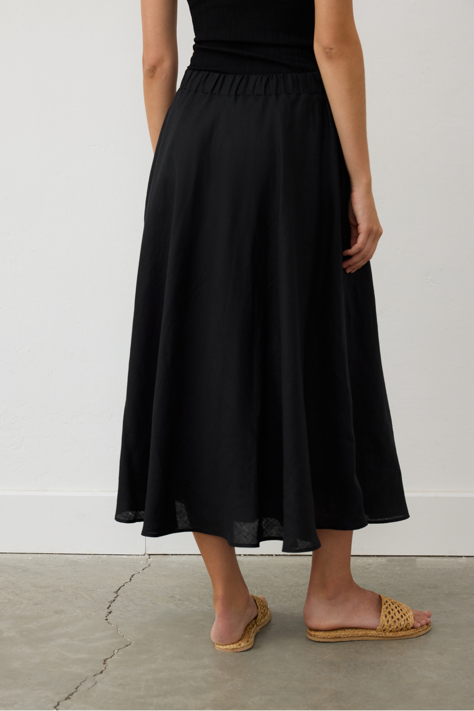 Uzun kloş etek ,etek belinde lastik mevcuttur.