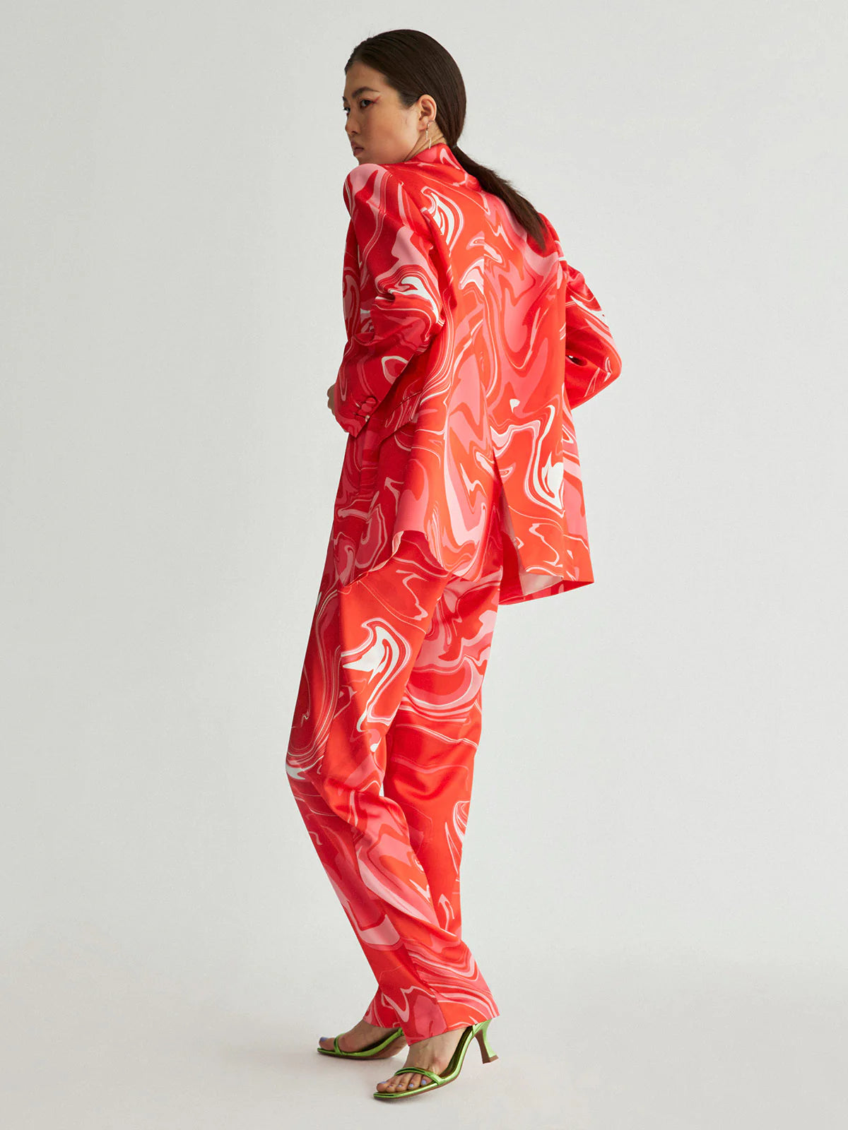 Saten kumaş, Desenli, Vatkalı, Oversize Blazer Ceket.