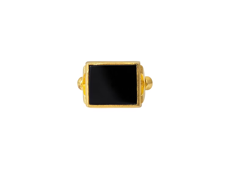 Siyah oniks taşlı, modern ve köşeli tasarıma sahip yüzük.