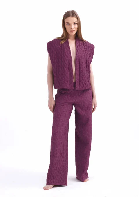 Kapitone kumaştan üretilmiş ikili set (yelek ve pantolon) modelidir.