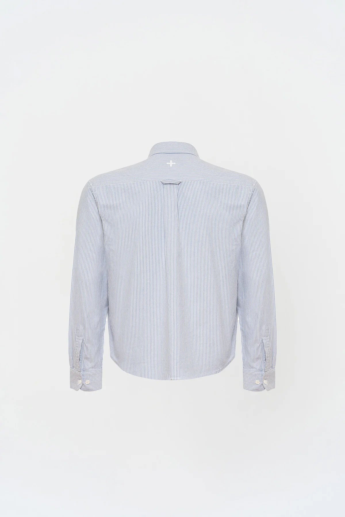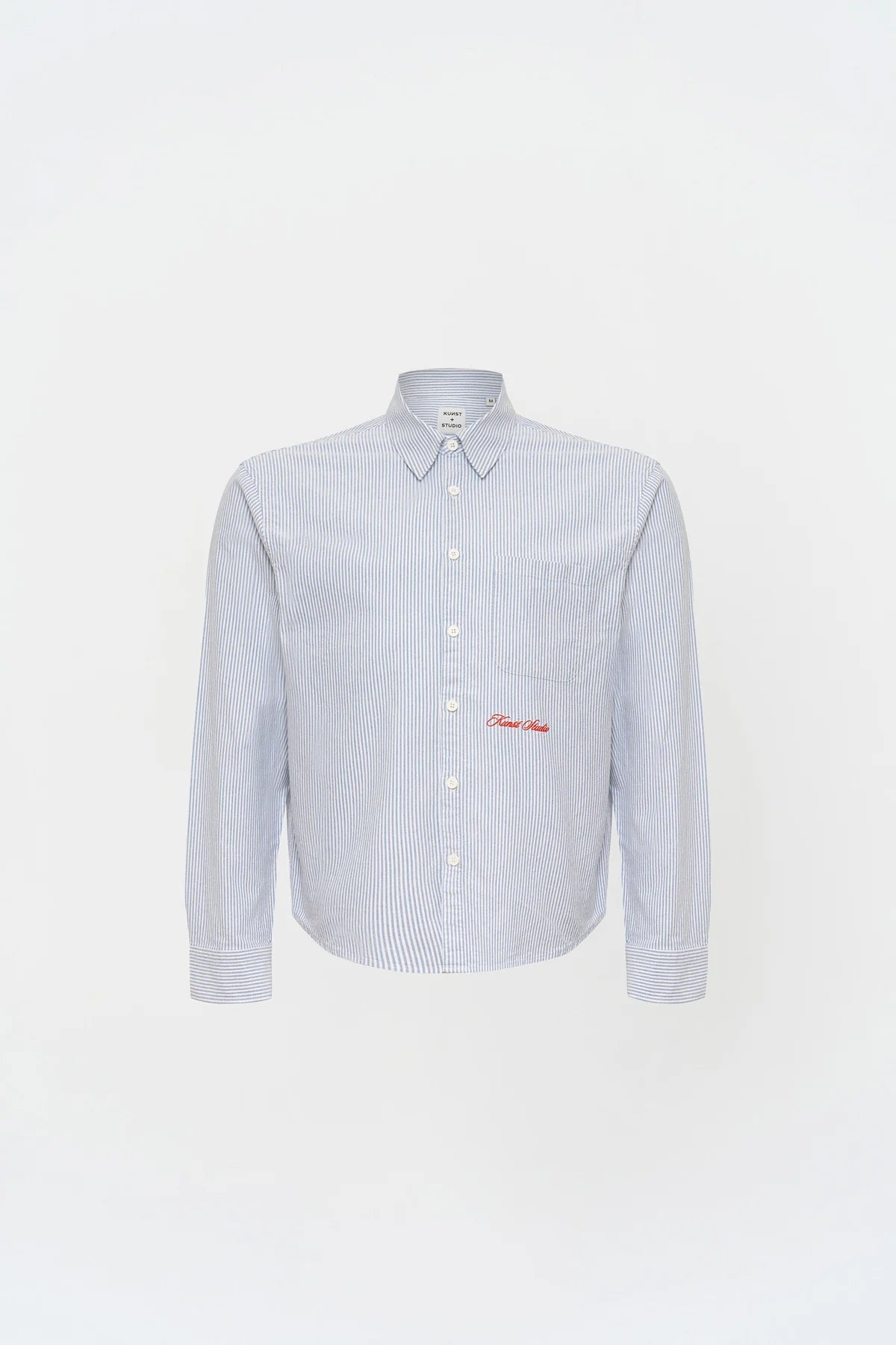 KNST Box Fit Nakışlı Mavi Beyaz Gömlek