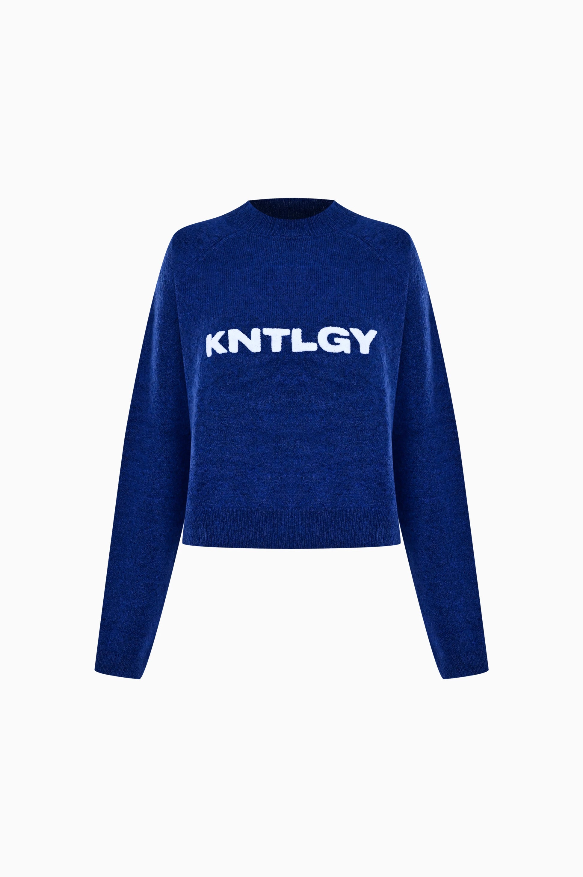 Göğüs kısmında büyük KNTLGY logosu bulunan, örme kısa kazak.