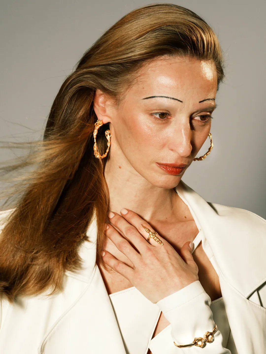 36 ct. Zirkon, 22 Ayar Altın Kaplamalı, Pirinç Materyalli ,El Yapımı, Tasarım Küpe.