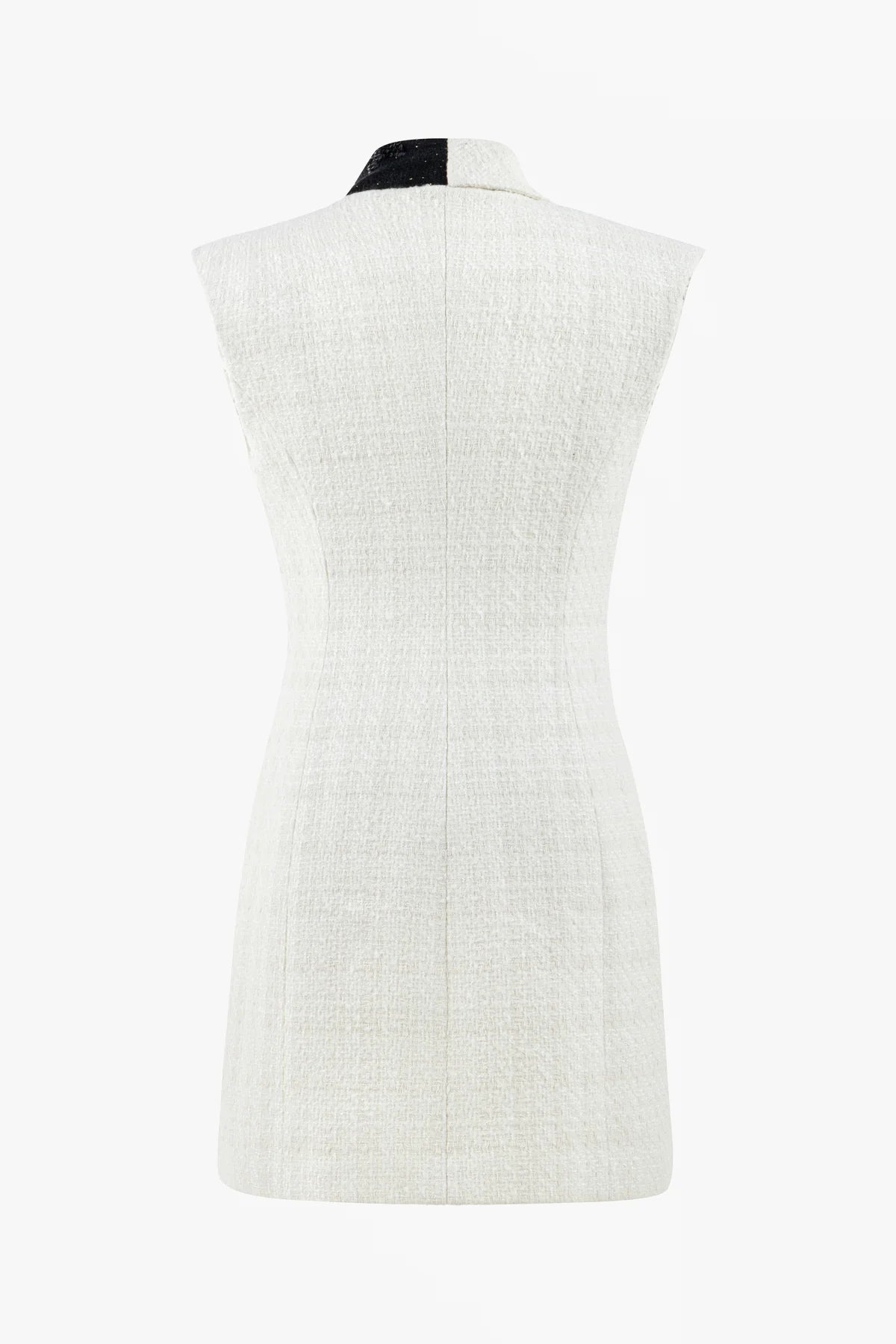 Model: Ceket yaka, kolsuz, mini boy elbise