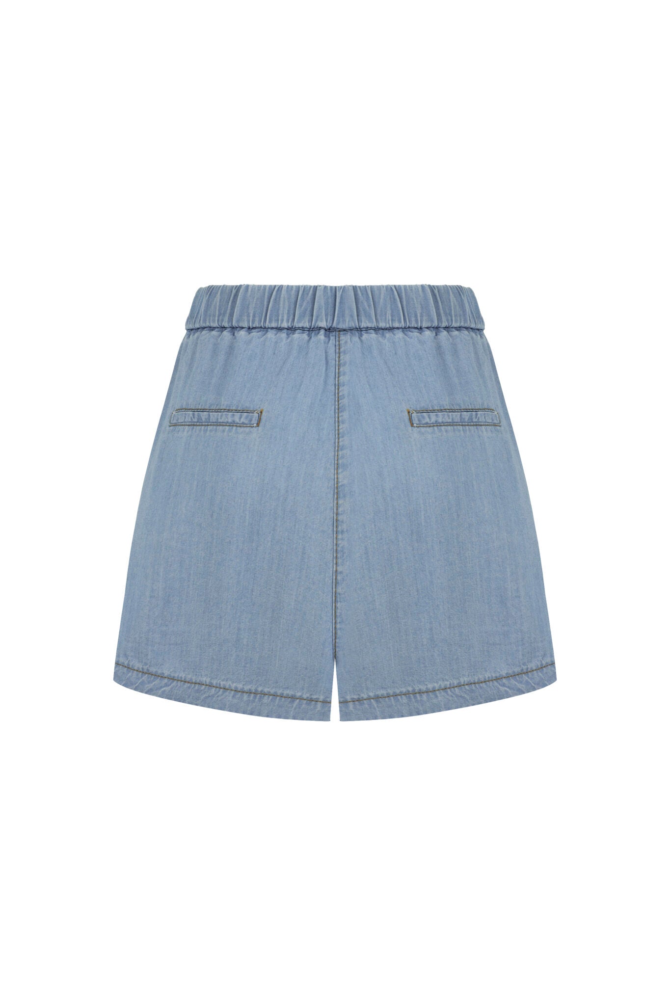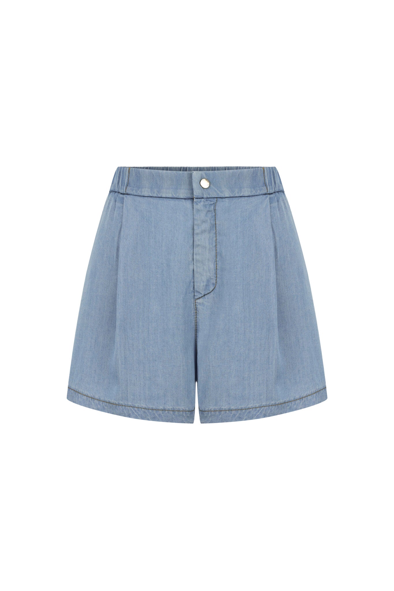 Yüksek bel, Arka bel kısmı lastikli, Yan cepli, Ön çıtçıt ve fermuar kapamalı, Arka yama cepli, Denim şort