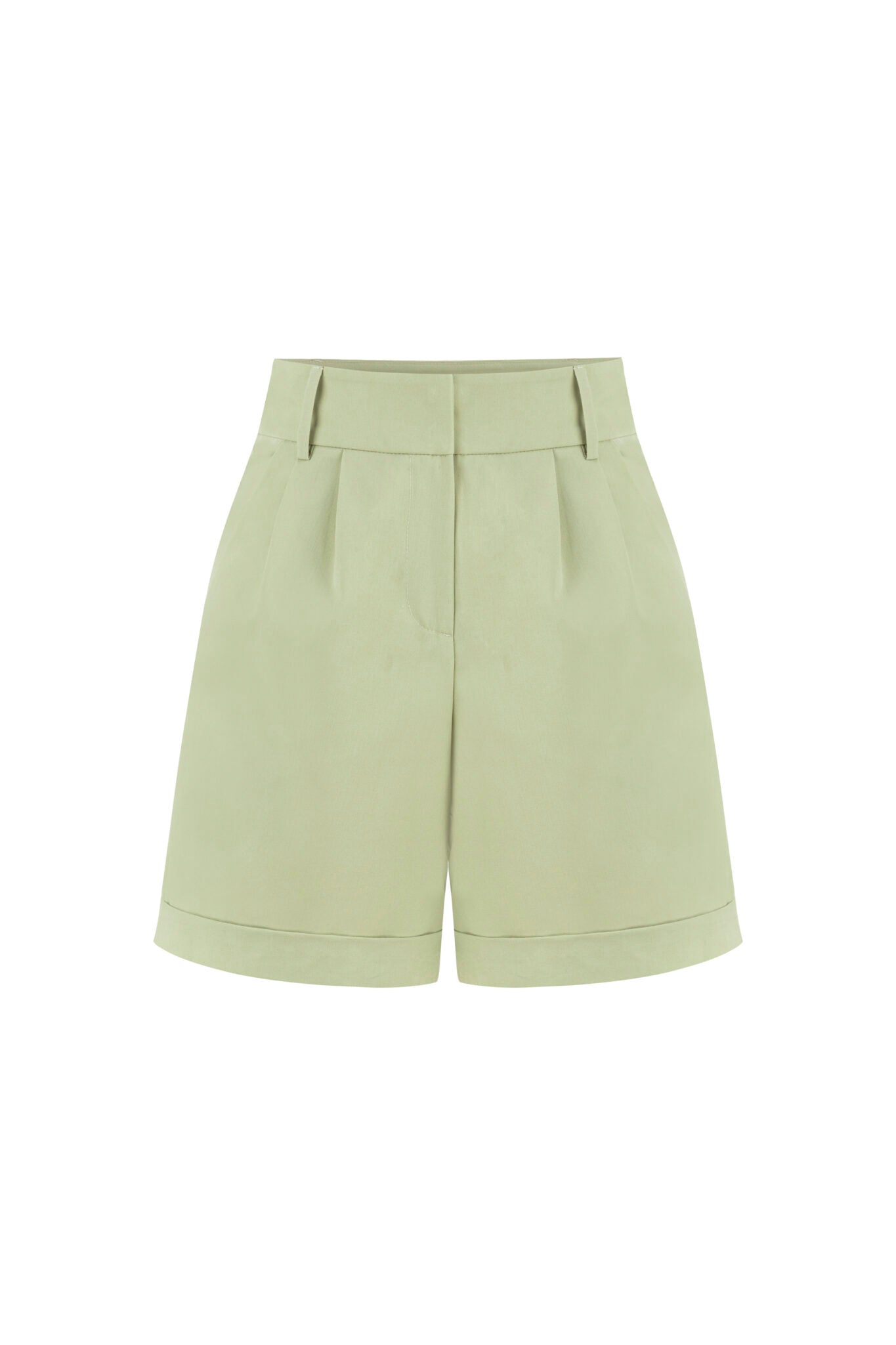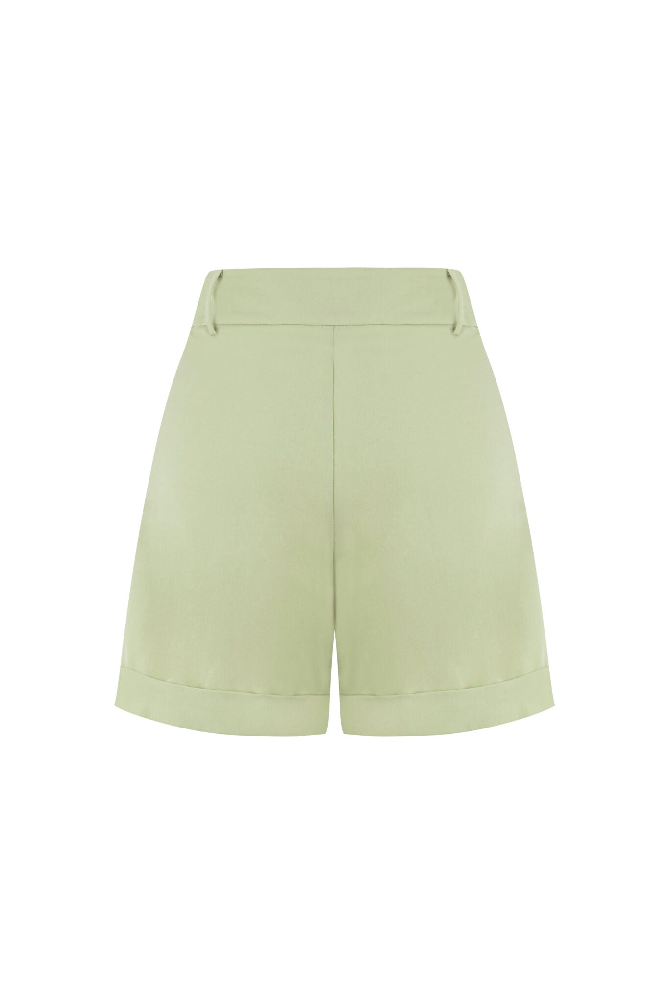 Yüksek bel, Bel kopça kapama, Pens detaylı, Kemer köprülü, Katlama paça detaylı, Yan cepli, Astarsız şort