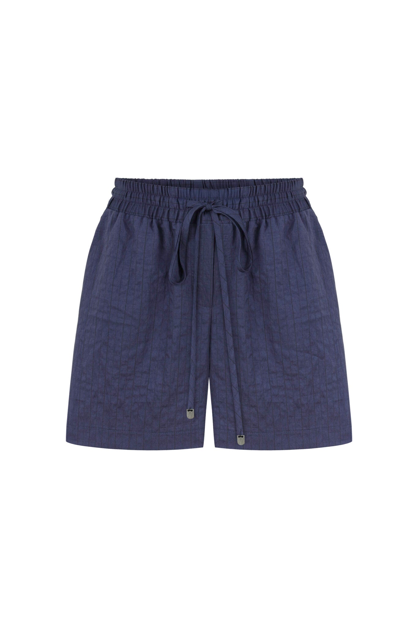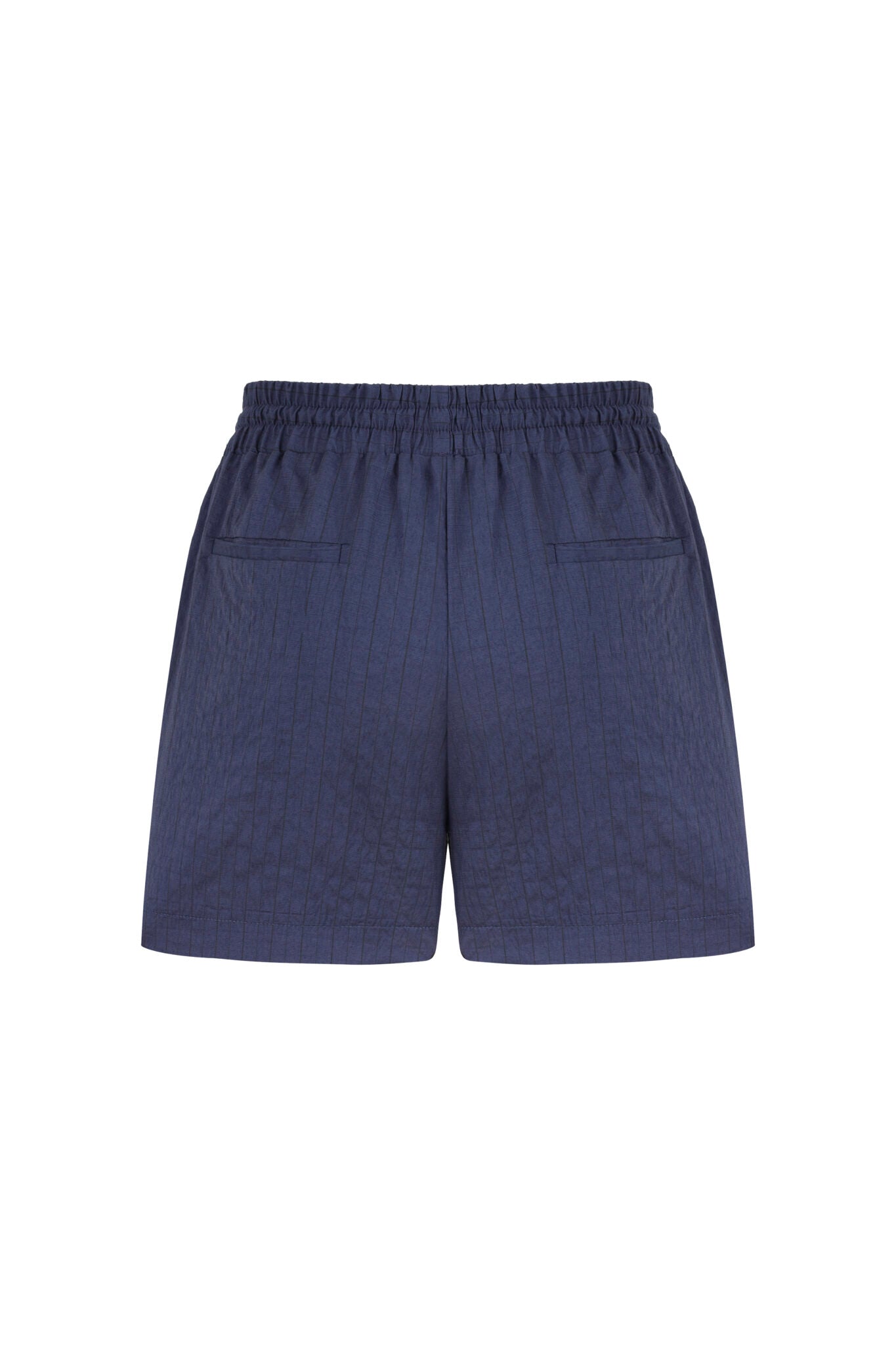 Yüksek bel, İnce çizgili, Lastikli bel bantlı, Ayarlanabilir bağcık detaylı, Yan cepli, Arka cep kapaklı şort