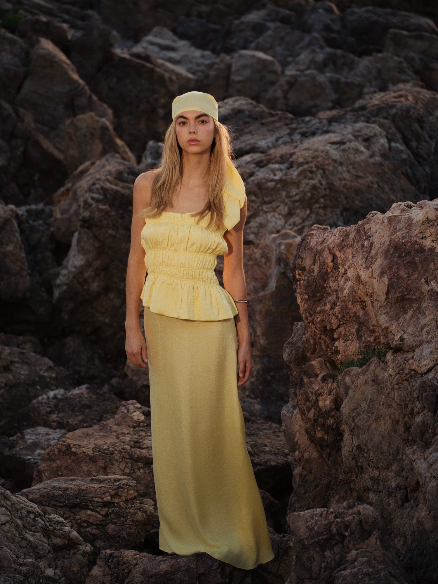 Lastikli bel detaylı, Yandan fermuar kapama, Astarsız, Yüksek bel, Düz kesim uzun etek