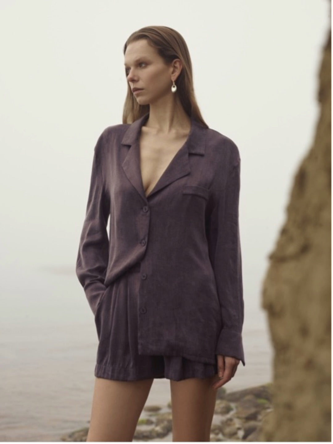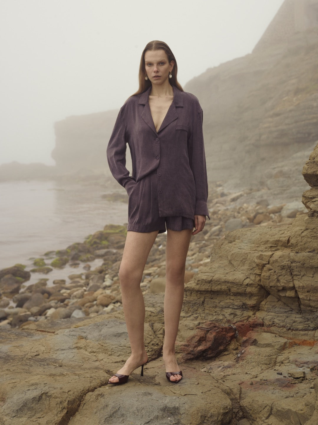 İki yan cep. Ön bedende düğmeli ve fermuarlı. Önü hafif pileli. Orta bel şort. Biyeli süs ön cepli.